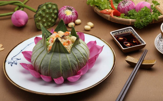 Sau đó, cho hạt sen đã lột sạch vỏ, bỏ tim sen trộn đều cơm lên. Có câu “Tháp Mười đẹp nhất bông sen”, chính vì thế mà người ta tận dụng thêm lá và hoa sen như một nguyên liệu trang trí tôn vinh thêm vẻ đẹp đậm đà hương Việt, đây cũng chính là nét làm nên sự độc lạ cho món ăn này.